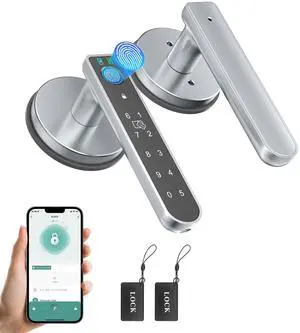 Smart Fingerprint Door Lock,Keyless Entry Door Lock with Handle,Fingerprint Door Knob for Bedroom,Office(Black)