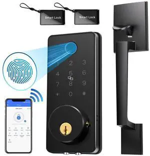 Smart keypad Door Lock with HandleFingerprint Keyless Entry Digital Lock with Built-in doorbell for Front Door,Bedroom,biometric Door knob, APP Control