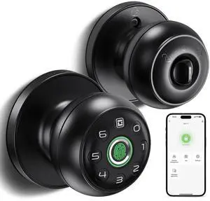 Fingerprint Door Lock, 3 in 1 Smart Fingerprint Door Knob with App Control & Key, Auto Lock, Biometric Door Knobs with Lock for Bedroom, Garage, Home & Office