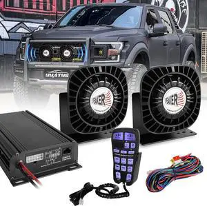 100W Police Siren PA System Kit, Multi-Tone Warning Speaker with Controller, Mic, IP66 Waterproof, 12/24V, Black Anodized Aluminum, for Emergency Vehicle, Food Truck, UTV, ATV