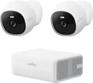youkey 2Pack Camera S320 with Homebase H310, 2.5K QHD Security Camera with Dual Band WiFi 6, Built-in 8GB Storage, Color Night Vision, Al Human Pet Detection, IP65, No Monthly Fees