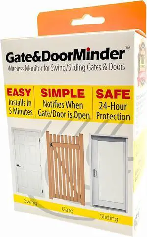 Gate & Door Minder Wireless Monitor for Swing/Sliding Gates & Doors, Easy 5-Minute Install, Notifies When Open, 24-Hour Protection