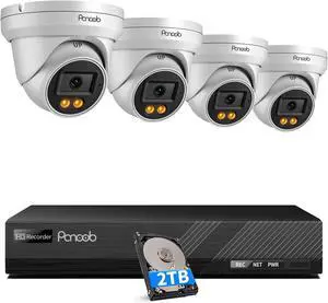 4 Camera Security System 5MP, 4X 5-Megapixel Wired IP Dome Turret Cameras Outdoor with AI Person Detection, Built-in Mic, Remote Access, 4K 8CH NVR 2TB HDD for 24-7 Recording, PD93A30408-5M
