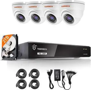 TIGERSECU 1080P 4-Channel 4 Dome Cameras DVR Security Bundle with 2TB HDD