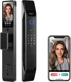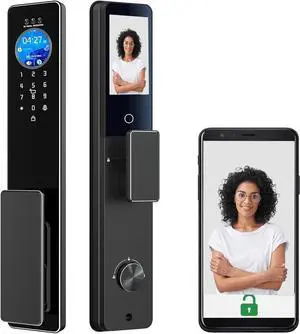3D Face Recognition Smart Door Lock with Video Intercom, Tuya App Remote Access, Biometric Fingerprint & Palm Print Unlock, Heavy Duty Aluminum Mortise Lock for Home & Office (Black)
