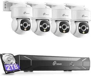 Loocam CCTV Cameras Security System with 2TB HDD & 8CH 8MP NVR, Wired Security Camera System PoE 4K with 4pcs Pan Tilt Security Cameras, AI Human/Vehicle Detection, Two Way Audio, Auto Tracking