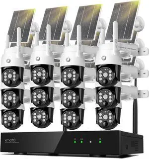 xmartO Virtual Bundle: 16CH 4K Dual WiFi6 NVR + 12x4MP QHD Solar PTZ Cameras, Automotive-Grade Battery All-Weather-Charge, 5G 1300ft Long Range H.265+, Outdoor/Indoor Wire-Free, Wall/Tree/Pole/Ceiling