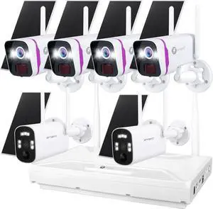 XMARTO 100% Wire-Free Solar Home Security Camera System Wireless, 4-Set 2K 4MP QHD CCTV Camera Kit with 4K 10CH Expandable WiFi NVR + 2 PCS Wire-Free Solar Security Cameras