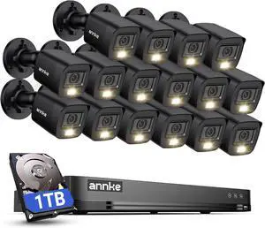 ANNKE 32CH H.265+ 3K Lite AI Security DVR with 16-Pack 1080P HD TVI Home Security Camera, Featuring IP67 Waterproof, Night/Day Vision, P2P Technology, 24/7 Recording, 1TB HDD