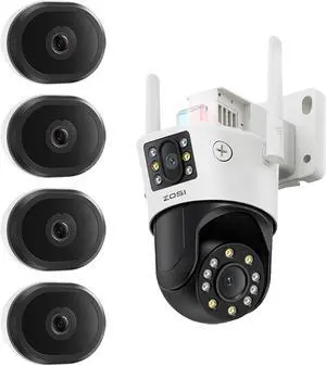 ZOSI 4 x C680 2K WiFi Window Security Camera and 1 x C298 Lite 4MP Dual-Lens(2MP+2MP) PT Camera with Auto Tracking, Plug-in, AI Detection, Color Night Vision, Memory Card Storage, Easy Install