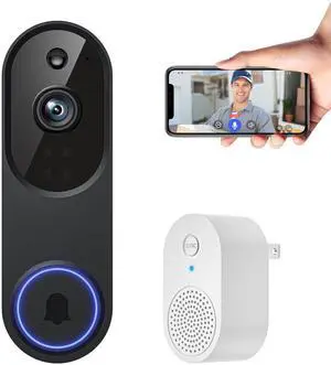 720P Smart Video Doorbell Camera with Motion Detection, Night Vision, Cloud Storage, Two-Way Talk, Battery Powered, Home or Business Security, 2.4GHz Wi-Fi(Excluding Receiver)