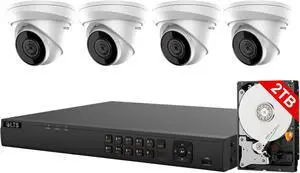 LTS 8ch PoE Security Camera System, 8-ch NVR with 2TB HDD + 4MP IP Cameras (4 Turret Cameras)