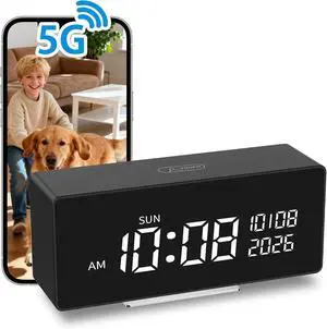 NOSENT Security Mini Camera, Digital Clock,1080P HD, Nanny Camera, with AI Motion Detection, Clear Night Vision,5G & 2.4G, 150° Viewing Angle,Bluetooth Connection, Local and Cloud Storage