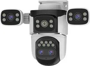 20MP Four Screens WiFi IP Camera 10X Zoom Outdoor Four Lens PTZ Human Auto Tracking Surveillance Cameras(US Plug,10K 10xZoom 128G)