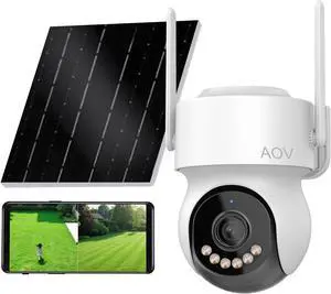 AOV 4MP Solar WiFi Security Camera Outdoor with 24/7 Recording, 10x Zoom, Auto Tracking, 355° PTZ Rotation, Solar Panel & Rechargeable Battery, 3 Night Vision Modes, WiFi 6, 2-Way Talk for Home