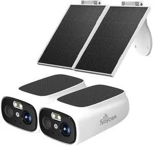 Rraycom 2.5K Solar Security Cameras Wireless Outdoor, 2.4/5Ghz WiFi Battery Solar Powered Security Camera System,Forever Power,Color Night Vision,AI Detection, 2 Way Audio,No Monthly Fee (C366-2PC)
