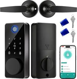 Smart Lock with 2 Lever Handle Set, Fingerprint Keyless Entry Door Lock Front Door App Control, Electronic Touchscreen Keypad Deadbolt, Auto Lock, IP54 Waterproof, Easy Install Built-in Doorbell