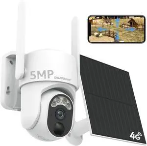BOAVISION 4G LTE Cellular Solar Security Camera Wireless Outdoor, Alert PTZ Cameras with 5MP HD Night Vision, PIR Motion Sensor, 2 Way Audio, No WiFi Needed Security Camera