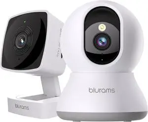 blurams 2K Security Camera Bundle Set, Indoor Camera and PTZ Pet Camera w/Motion Tracking, 2-Way Audio, IR Night Vision, Siren, Compatible with Alexa