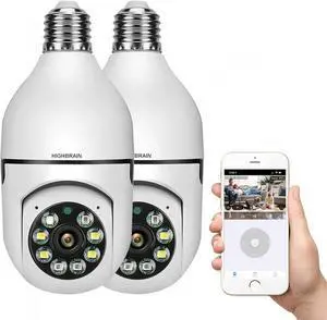 5G WiFi Light Bulb Camera, 2.4GHz & 5G 1080P E27 Light Bulb Home Security Camera, Indoor 360° PTZ Surveillace Cameras, Full Color Day and Night, Smart Motion Detection (Support 5G, 2 Pack) White