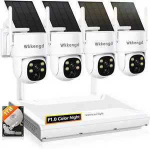 Wire-Free & Aurora Lux Night Color Wkkengd Solar Security Cameras Outdoor Wireless, Battery Powered Home Security PTZ Cameras System with 1TB HDD, 2K Color Night Vision, AI Detection, 5G & 2.4G