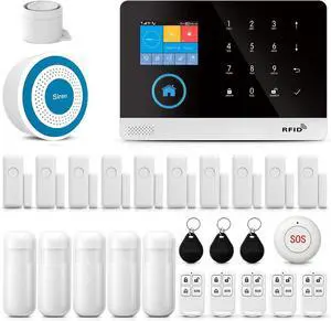 WiFi and 3/4G GSM Home Burglar Security Alarm System Auto Dial with Smart Life and Tuya App Alert, Works with Google Assistant and Alexa