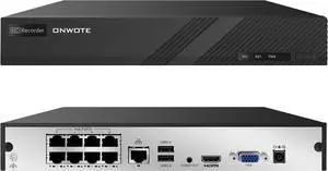 ONWOTE 8 Channel 4K 8MP NVR (Built-in 8 PoE Ports), Video Audio Security Recorder, Only Work with ONWOTE 8MP/ 6MP/ 5MP PoE IP Cameras, 8-CH Synchro Playback, 8CH NVR with NO Hard Drive