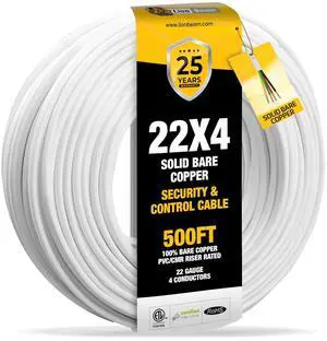 LION BEAM 22/4 Low Voltage Cable 500ft Coil Pack - 100% Solid Bare Copper Audio and Security Wire CMR Jacket, 22AWG and 4 Conductors Bulk Cable for CCTV, Access Control, Alarm, and Thermostat Systems