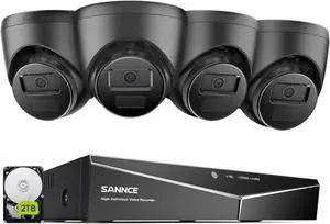 SANNCE 1080P Security Camera System - 16CH 2MP Surveillance DVR with 4PCS 2MP HD Black Dome Cameras for Indoor Outdoor IP67 Weatherproof IR Night Vision LEDs, Easy Remote Access(2TB HDD)