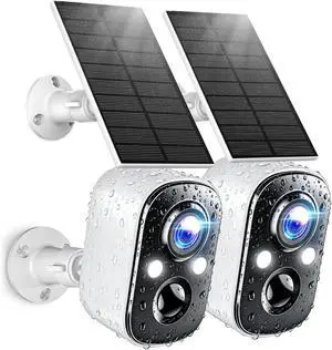 Techage Solar Security Cameras Wireless Outdoor, 2K Battery Powered WiFi Cameras for Home Security with AI Motion Detection, Color Night Vision, 2-Way Talk, IP66 Waterproof, Cloud/SD Storage 2 Pack