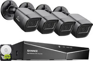 SANNCE 1080P Security Camera System - 16CH 2MP Surveillance DVR with 4PCS 2MP HD Black Dome Cameras for Indoor Outdoor IP67 Weatherproof IR Night Vision LEDs, Easy Remote Access(4TB HDD)