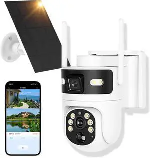 Bestmotoring 4G LTE Cellular Solar Security Camera Outdoor, No WiFi Needed Wireless 2K FHD PTZ Camera, PIR & AI Motion Detection, Color Night Vision, 2-Way Talk, Dual Lens 360° View (White, 4G)