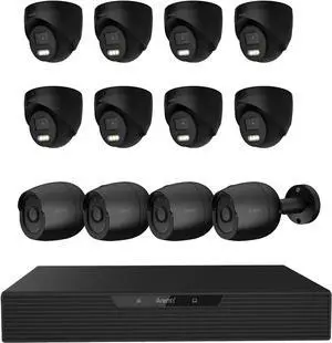 • Type: Two 8MP Outdoor Spotlight Camera Bullets bundled with two 5MP Outdoor IP cameras and a 4K 8 Channel NVR provides not only 24/7 recording but remote access, deterrence, and intelligent detection. The 5MP bullet camera has a built-in microphone for audio recording as well. The 8 Channel NVR Recorder comes