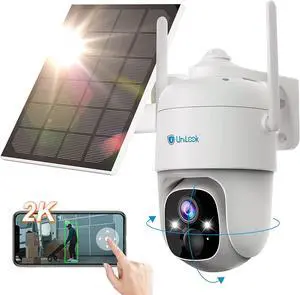 Unilook 2K Solar Wireless Security Camera Outdoor, 3MP Solar Security Cameras Wireless Outdoor Wi-Fi, 360° PTZ Solar Powered Wireless Camera, with Solar Panel & Smart AI & 2-Way Talk, Cloud/SD Storage