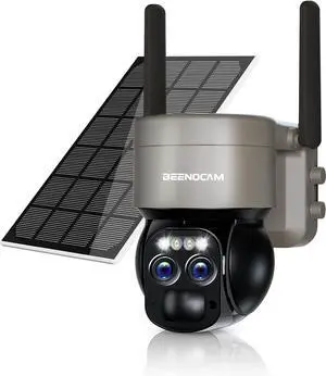 BEENOCAM 8X Zoom 4K 5Dbi Security Cameras Wireless Outdoor Solar Battery Powered 360° PTZ Security Outdoor Wireless Camera with Spotlight Siren, Motion Detection, Color Night Vision,2-Way Audio, IP66