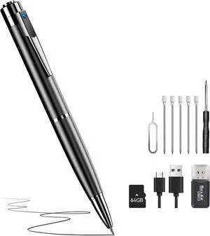 64G 1080P HD Portable Pen Camera,Long Battery Life Body Camera Pen with Loop Recording,Rechargeable Nanny Cam with Smooth Writing for lecture,Meeting,Classes, Security Surveillance Camera Easy to Use