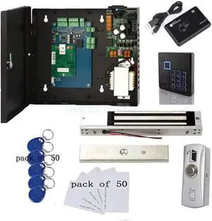 Stainless Waterproof Door Access Control System Kit, 300kg/660lbs Force Electric Magnetic Door Lock Kit with RFID Keypad/Reader Home Security System 10 Keyfobs 110V Power Supply Metal Exit Button