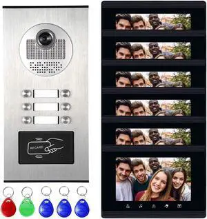 Upgrade Versions 6 Units Apartment Intercom System 7 inch Touch Monitor Video Door Phone Kits Support Ethernet Cable Connect, Single-Supply, ID Keyfobs Unlock for Home Apartment