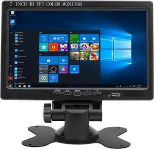 7 inch HD Security Monitor - Small Monitor 1024x600 IPS Screen with AV, VGA, HDMI Input - Remote Control - for PC/TV/Camera/Raspberry PI - 178° Viewing Angle - Speaker & Earphone Jack