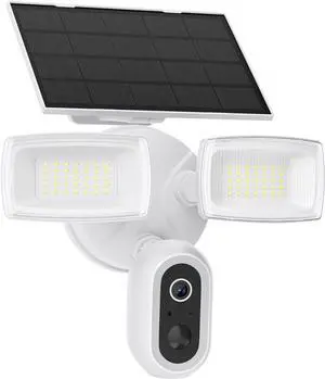 Onforu Solar Floodlight Security Camera, 2K Wireless Outdoor Flood Light Cam with Dual Adjustable Heads, Color Night Vision, Motion Detection, 2.4GHz WiFi, Siren, Rechargeable, Works with Alexa, IP65
