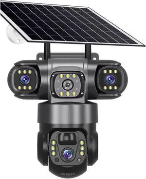 12MP HD Solar Outdoor Camera 3 Lens 3 Screen 10X Zoom CCTV Night Vision PIR Human Detect IP66 Waterproof Wi-fi Security Camera