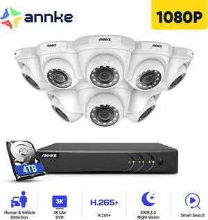 ANNKE 1080p CCTV Security Camera Systems, 8CH 3K H.265+ AI 5-in-1 DVR 4TB HDD, Human/Vehicle Detection, 4x 2MP Wired Turret Cams, IP66 Weatherproof, Instant Email and App Alerts with Snapshots 4TB HDD