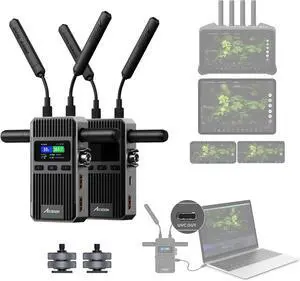 ACCSOON CineView 2 SDI Wireless Video Transmission System Transmitter&Receiver 2.4+5Ghz for Live Streaming 1080p 60fps 0.05s Latency 1500ft Range up to 4 Devices Monitoring