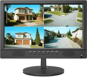 CCTV Monitor, 10.1 Inch Small Monitor 1280 * 800 IPS Portable Display with Stand Built-in Speakers Housing Screen Remote Control DMI/VGA/BNC/USB Input for Security Camera Xbox PC
