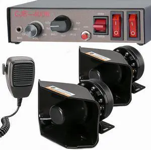 BooYu 9 Tone 12V 200W Warning Emergency Police Siren PA System [180° Loud Speaker][Handheld Microphone][Hands-Free][125-135dB][2 x 10A Switches] for Firefighter Ambulance Vehicles Truck SUV ATV UTV