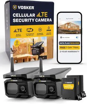 Vosker VKX Solar Powered 4G-LTE Outdoor Cellular Security Camera - No WiFi Needed, Motion Activated, Night Vision, SIM Card Included, IP65 Weather-Resistant, Photos & 15s Video Requests (2 Pack)