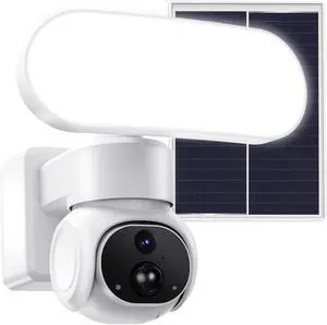 Solar Floodlight Security Camera Wireless Outdoor, Motion-Activated Recording/Notification/2000LM Floodlight/105dB Siren, 360° Pan/Tilt, 2K, WiFi, HD Live View/Talk, Free Local 64GB Storage
