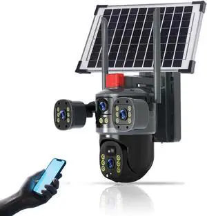 Triple-Lens Solar 360° Dome Camera, Solar Camera Outdoor Wireless WiFi Three Lens, Cameras for Home Security, 2-Way Audio, 360° Pan & Tilt Surveillance, Cameras for Home Security (WIFI version)