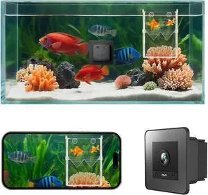 2K HD Aquarium Camera & Hatchery Wi-Fi Monitoring Bundle, 140° Wide-Angle Anti-Glare Macro Lens & Floating Acrylic Fish Incubator, Invisible IR Night Vision, 800 mAh Battery, 24/7 Recording