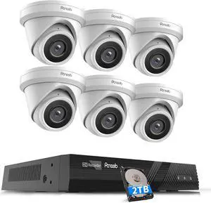NVR Security Camera System 8 Channel, 6X 5MP Wired Surveillance IP Dome Turret Camera with Person Detection for Home Security, 100ft IR Night Vision, 4K 8CH PoE NVR 2TB HDD, PD93A0608-5M